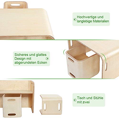 Houten kinderzitgroepen: de tafel- en stoelset voor kinderen bestaat uit massief hout, de structuur is solide en stabiel, het materiaal is milieuvriendelijk, de afgeronde hoeken en randen zijn afgerond, zodat je kind tijdens het spelen niet wordt beschadigd. De houders voor placemats voor kinderen zijn stevig en garanderen veiligheid, ook als het je kind onaangenaam is om erop te zitten.