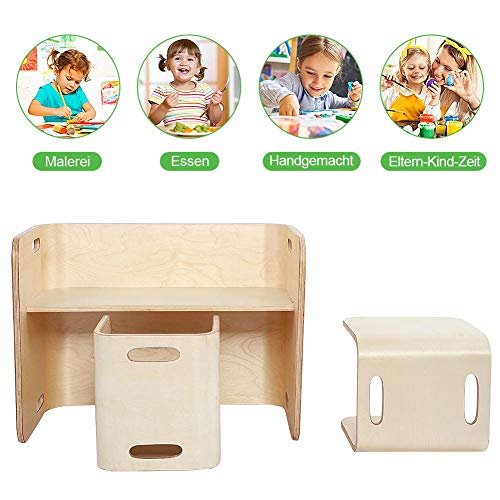 Interessant design: de kinderzitgroep van de kinderzitgroep kan je kinderen tijdloze kleuren bieden om te eten, spelen, schilderen of uitnodigen van de beste vrienden om te spelen. Het is de ideale kinderzitset. Natuurlijke afwerking: de natuurlijke afwerking van stoelen en tafels kan aan elke omgeving worden aangepast.