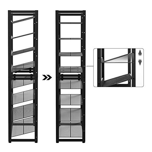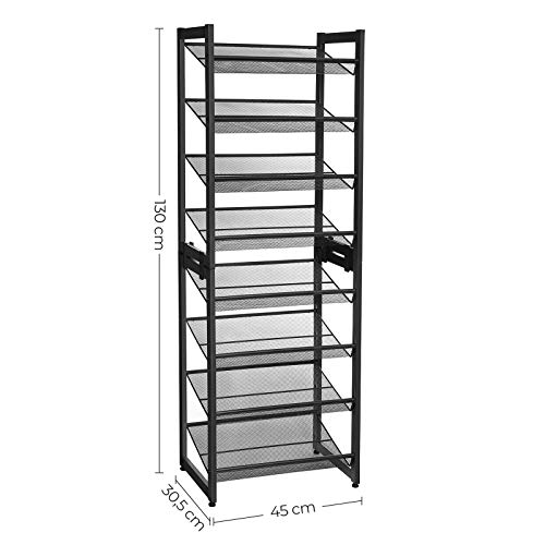 BESPAAR RUIMTE: Heb je altijd al gedroomd van een groot schoenenrek, maar heb je maar weinig ruimte? Dankzij zijn slanke vorm biedt dit 45 x 30,5 x 130 cm grote schoenenrek veel ruimte voor uw schoenen en neemt het weinig ruimte in beslag