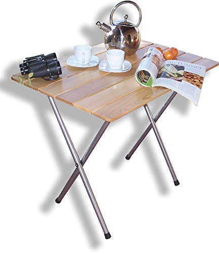 Bistro tafel 80 x 60 cm, tafelblad met larikshouten latten en kruispoten, inklapbaar en demonteerbaar.