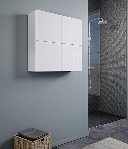 MaMa Store Atena dubbele kast met 4 deuren en openingssysteem, gelamineerd, 71 x 22 x 71 cm, wit