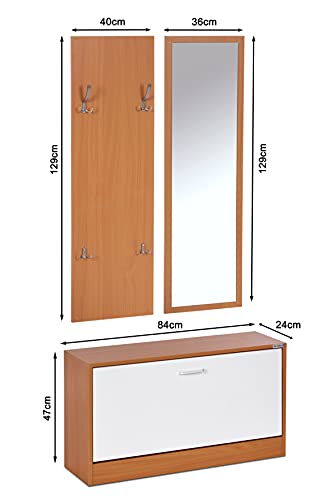 Specification: ts-ideen Set van 3 garderobespiegelde schoenenkast, zitbank in beuken, wit