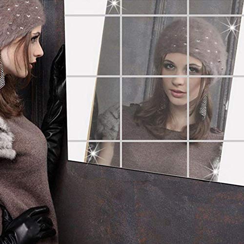 Specification: axuanyasi 18 stuks spiegeltegels zelfklevend, afgeronde hoeken spiegel sticker wandspiegel voor wanddecoratie (zilver…