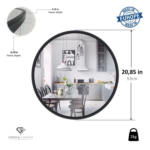 GOLD&CHROME UNIQUE DESIGN Wandspiegel van het merk, rond, met aluminium lijst | Teflon-gecoat, vochtbestendig…