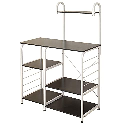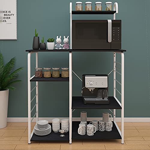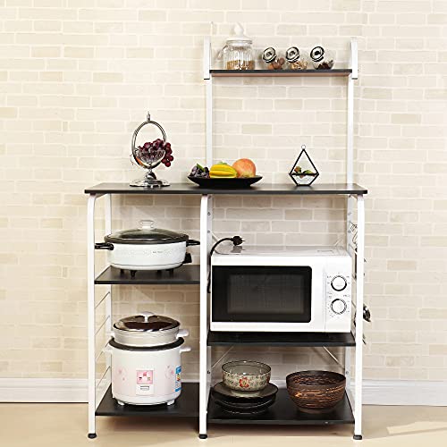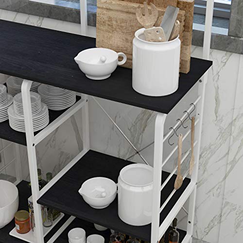 SogesHome 172-BK-SH, Keukenrek, bakkersrek, opbergrek met kleine haken, magnetronhouder, staand rek, 90 x 42 x 133 cm