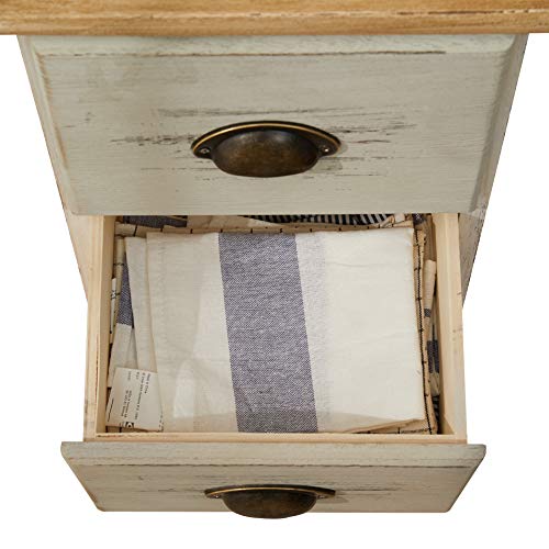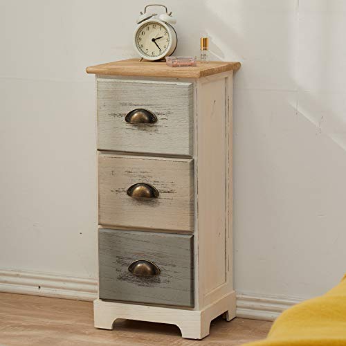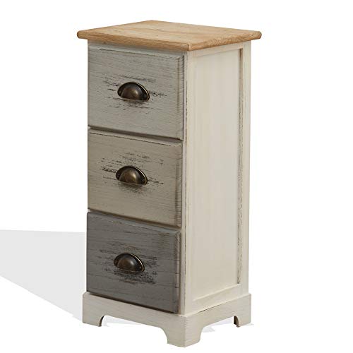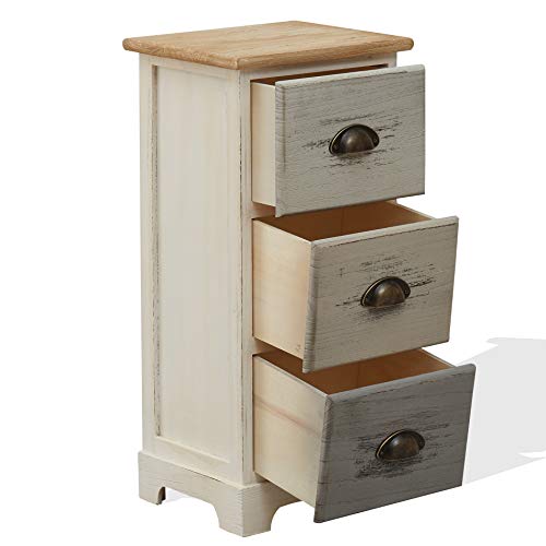 Specification: Rebecca Mobili Nachtkastje met 3 Lades, Houten Ladekast, Wit Beige Grijs, Paulownnia-Hout, Vintage Stijl…