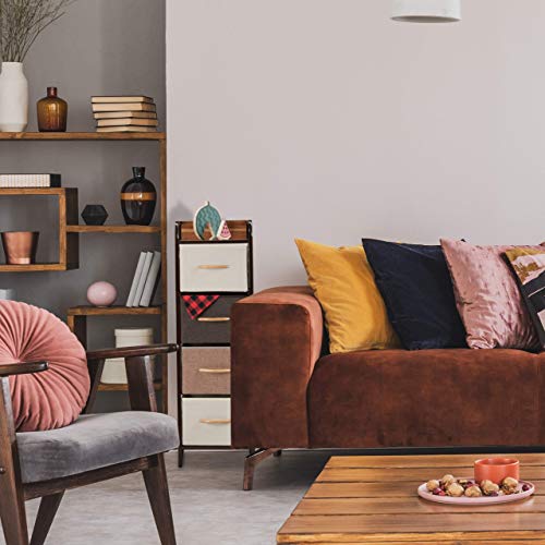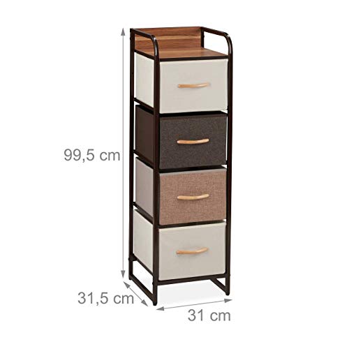 Relaxdays Ladekast, 4 stoffen vakken, smal, met handgrepen, plank, niskast HBT 99,5 x 31 x 31,5 cm, bruin