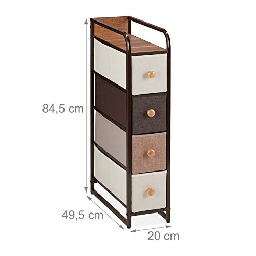 Relaxdays Ladekast, 4 stoffen vakken, smal, met knop, plank, niskast HBT 84,5 x 20 x 49,5 cm, bruin
