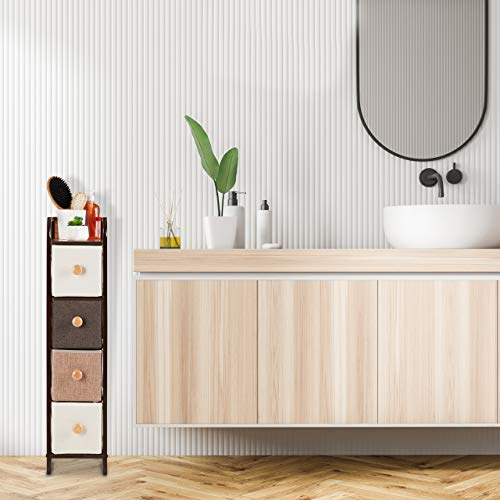 Specification: Relaxdays Ladekast, 4 stoffen vakken, smal, met knop, plank, niskast HBT 84,5 x 20 x 49,5 cm, bruin