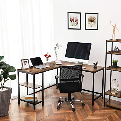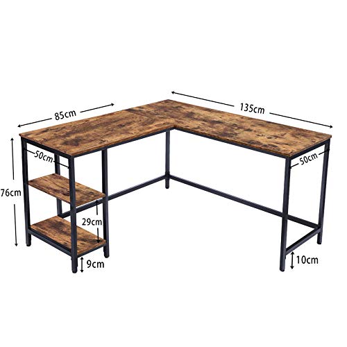 Specification: HOOBRO Computertafel, Hoekbureau, L-vormig Bureau, met 2 planken, ruimtebesparend, industrieel ontwerp, studeerkamer…